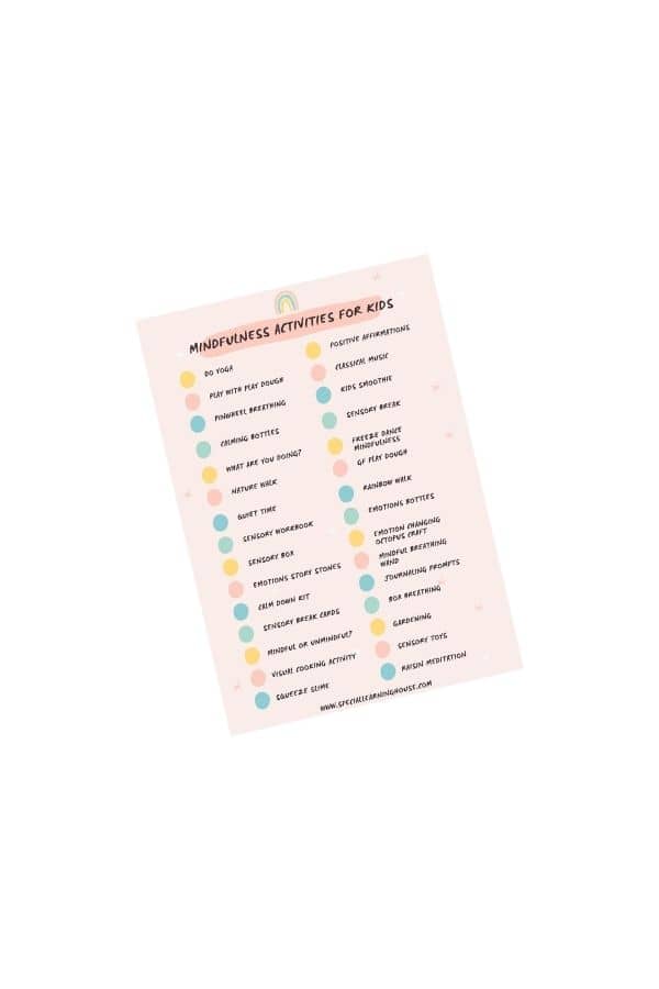 Print out this checklist and hang it on the wall or include it in your child, or students', program binders so you always have mindfulness activity ideas every day.
